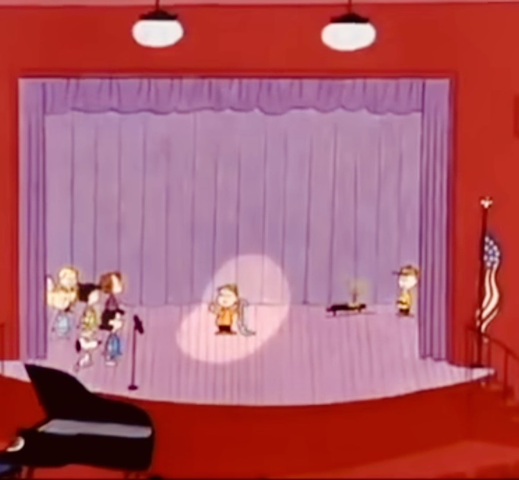 Linus steps forward, drops his security blanket, and recites Luke 2:8-14, revealing the Nativity story and the birth of Jesus. He famously concludes with-